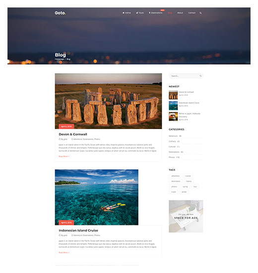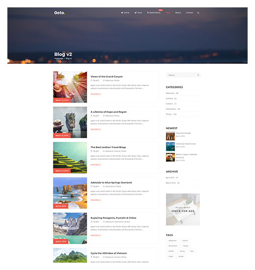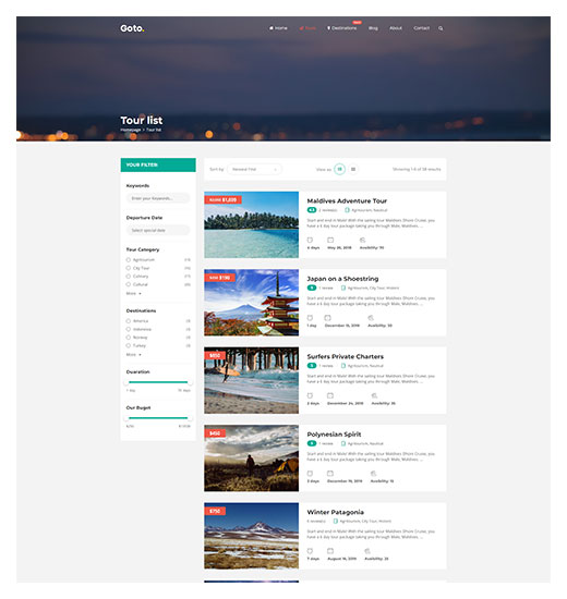 The theme comes with an advanced search functionality & easy to use of tour booking system.