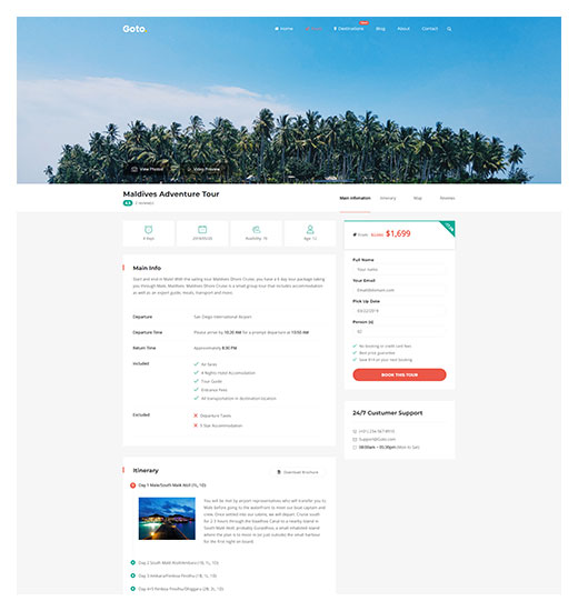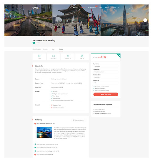 The theme comes with an advanced search functionality & easy to use of tour booking system.